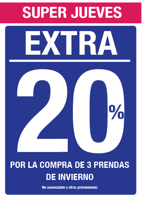 Solo hoy 20 % de descuento en toda la tienda.