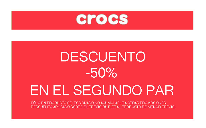 Solo este viernes y sábado en nuestra tienda Crocs con el descuento aplicado sobre el precio outlet al producto de menor precio.