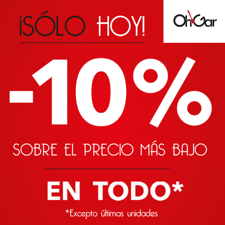 Solo hoy visÃtanos y te llevas un 10 % de descuento en todos nuestros productos sobre el precio Outlet.