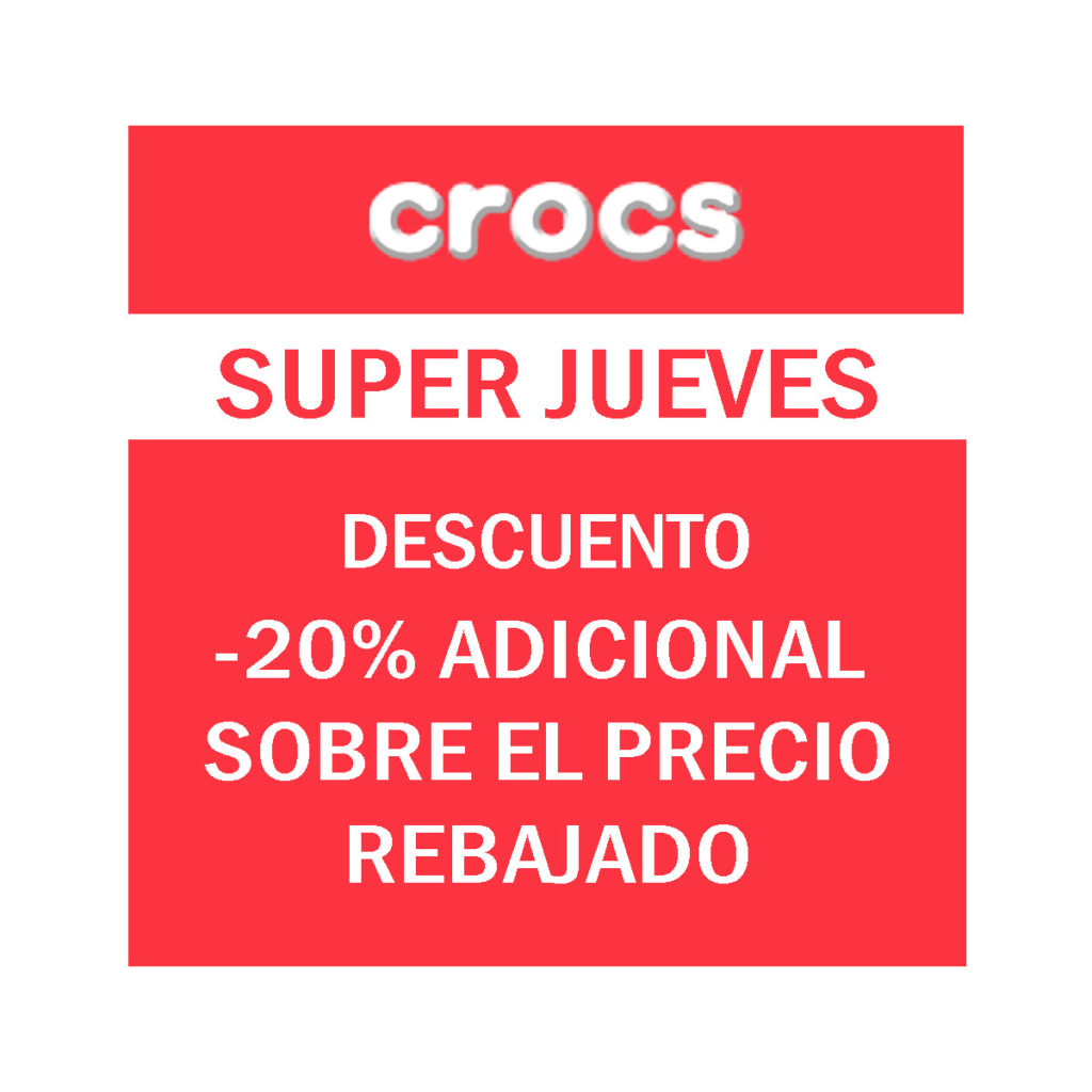 Solo este Superjueves en nuestra tienda Crocs con el descuento aplicado sobre el precio outlet al producto de menor precio.