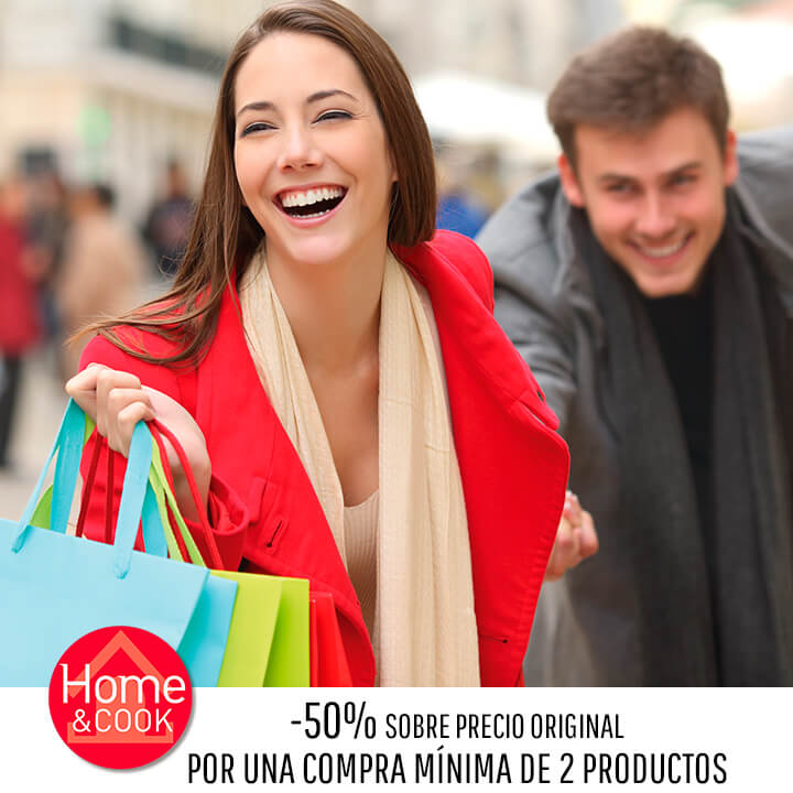 Solo este sábado 26 de enero visita nuestra tienda Home&Cook y llévate un 50 % de descuento sobre el precio original en TODA LA TIENDA por la compra mÃnima de 2 productos.