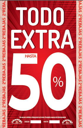 ¡Extra, extra! Ya están aquà las segundas rebajas en Charanga. Disfruta de hasta un 50% de descuento en todo excepto en artÃculos de avance de temporada. Corre, que terminan el 27 de febrero.
