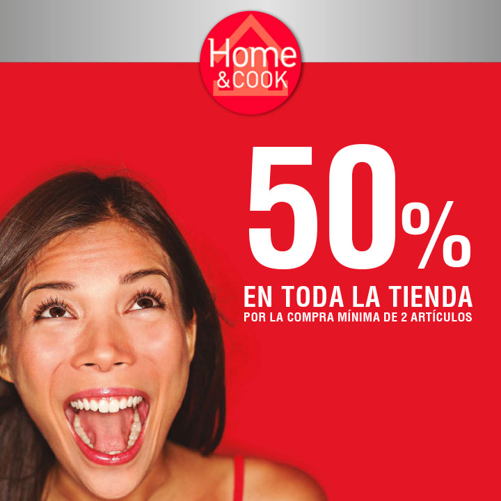 Has leÃdo bien… en Home&Cook celebran este SUPERJUEVES con una oferta por todo lo alto. Por la compra mÃnima de 2 artÃculos te hacen un 50 % de descuento sobre el precio original.