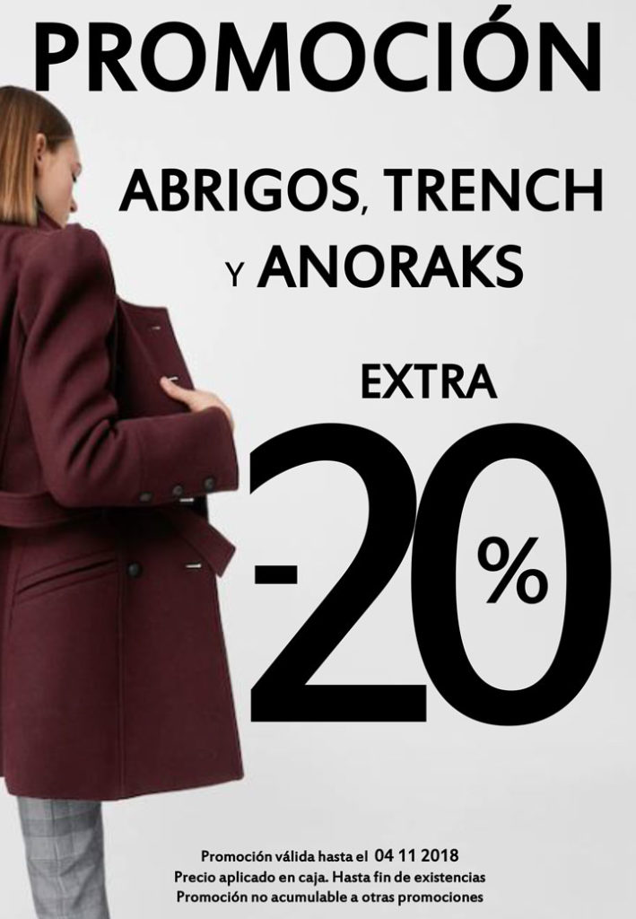 20 % extra en abrigos, trench y anoraks de la colección Otoño-Invierno de Mango Outlet.