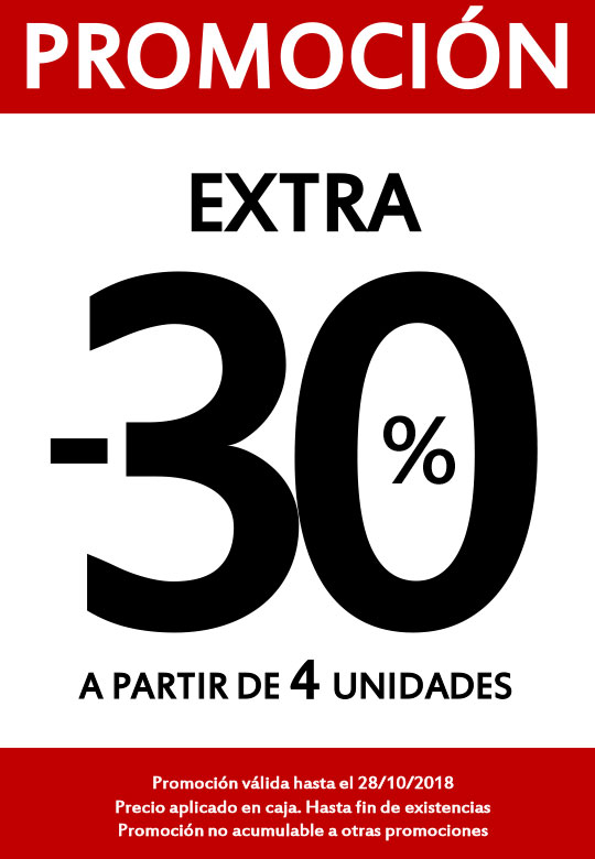 - Por la compra de 3 artÃculos 30 % de descuento.