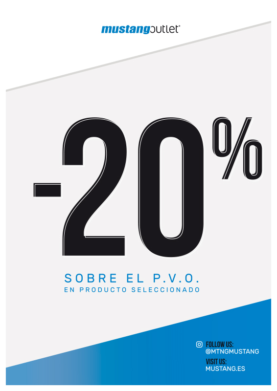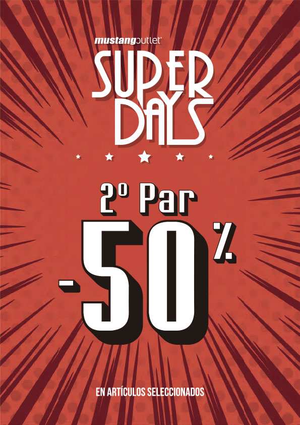 En Mustang Outlet tienen el mejor y solo hasta el 28 de octubre a un precio muy especial. Por la compra de dos artÃculos el 2º te lo llevas con un 50 % de descuento en artÃculos seleccionados.