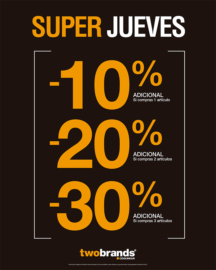 Consigue hasta un 30% de descuento adicional en tu compra. Visita Two Brands y ¡entérate de todo!