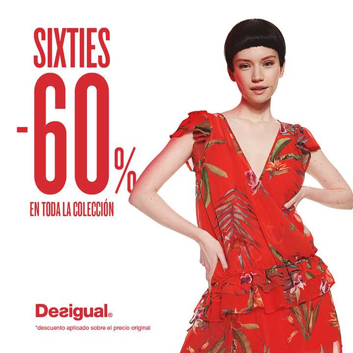 Vista Desigual de tu Centro Comercial The Outlet Stores Alicante los dÃas 12, 13 y 14 de abril y disfruta con descuentos de hasta un 60% en toda la colección y todo porque… SIXTIES ARE BACK!