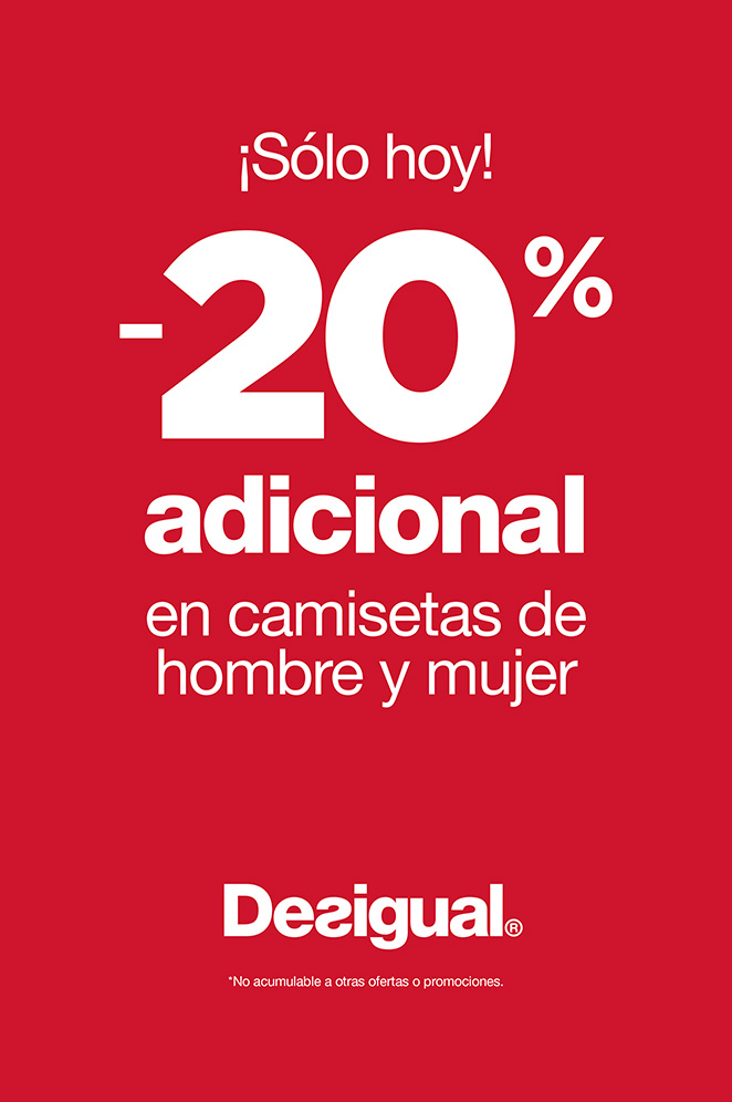 20% en camisetas de hombre y mujer. Visita Desigual y descúbrelo.