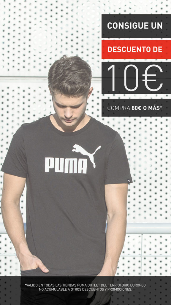 Ven a Puma y disfruta de un descuento de 10 € en todo el stock de tienda. ConsÃguelo en compras superiores a 80 €.