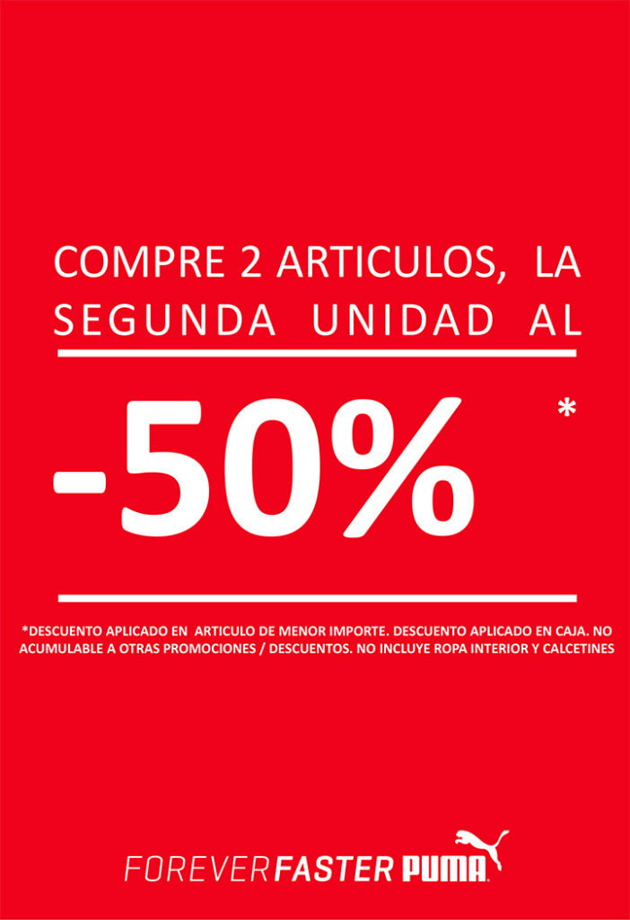 Compra 2 artÃculos y la segunda unidad te la llevas al 50% de descuento.
