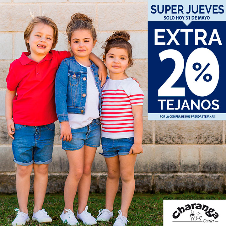 ¡La mejor moda infantil en Charanga! Pásate por The Outlet Stores Alicante y no te quedes sin el 20 % de descuento extra por la compra de dos tejanos.