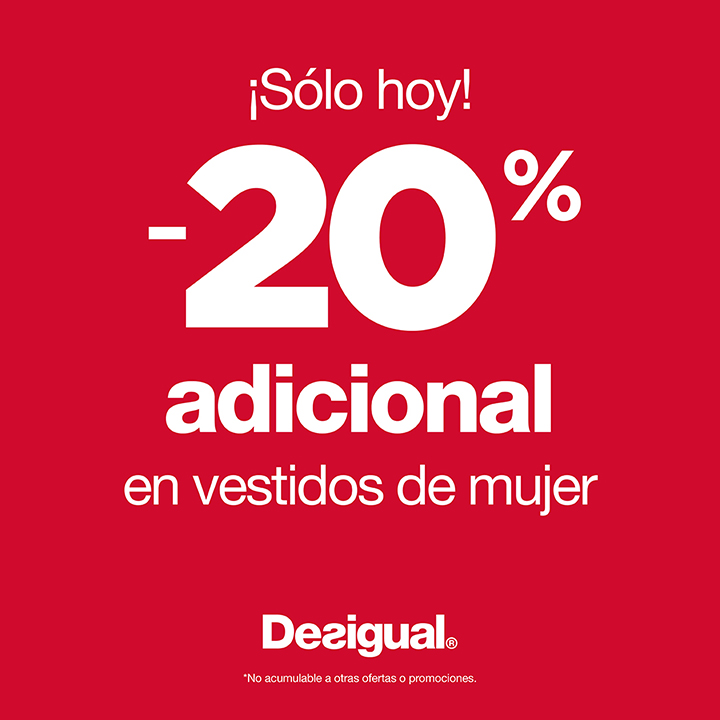 ¡Llénate de color y felicidad con la moda en Desigual! Ven a conocernos en The Outlet Stores Alicante y disfruta de un 20 % adicional en vestidos.