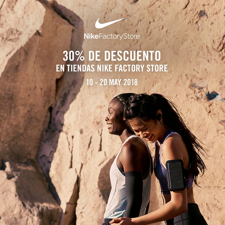 Consigue un 30 % de descuento adicional en tiendas Nike Factory Store. RegÃstrate y recibirás en tu email un cupón que deberás presentar en tienda.