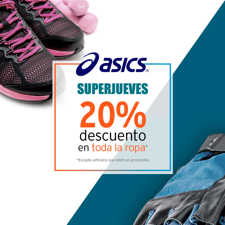 Disfruta este Superjueves en Asics con un 20% de descuento en toda la ropa.