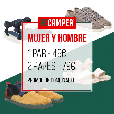 Descubre la promoción que nos trae Camper. 1 par por 49 € y 2 pares por 79 € combinable en hombre y mujer.  ¡Ven a por los tuyos!