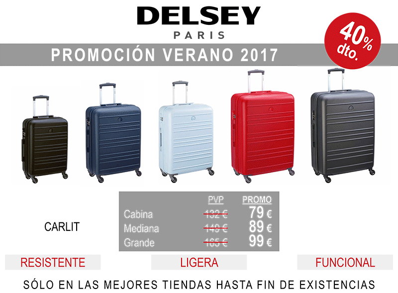 ¿Pensando en renovar tus maletas? No lo pienses más y ven a Efanbi. Ahora y hasta fin de existencias, encontrarás las maletas Delsey con un 40% de descuento adicional.