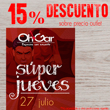 En Oh!Gar y llévate todo lo que necesites con un descuento del 15% en toda la tienda sobre el precio outlet.