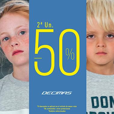 Ya está aquà la nueva colección Décimas Junior con una promoción especial en sudaderas y pantalones de algodón. ¡Llévate la segunda unidad con un 50% de descuento! VisÃtanos en Décimas, tu tienda de deporte.