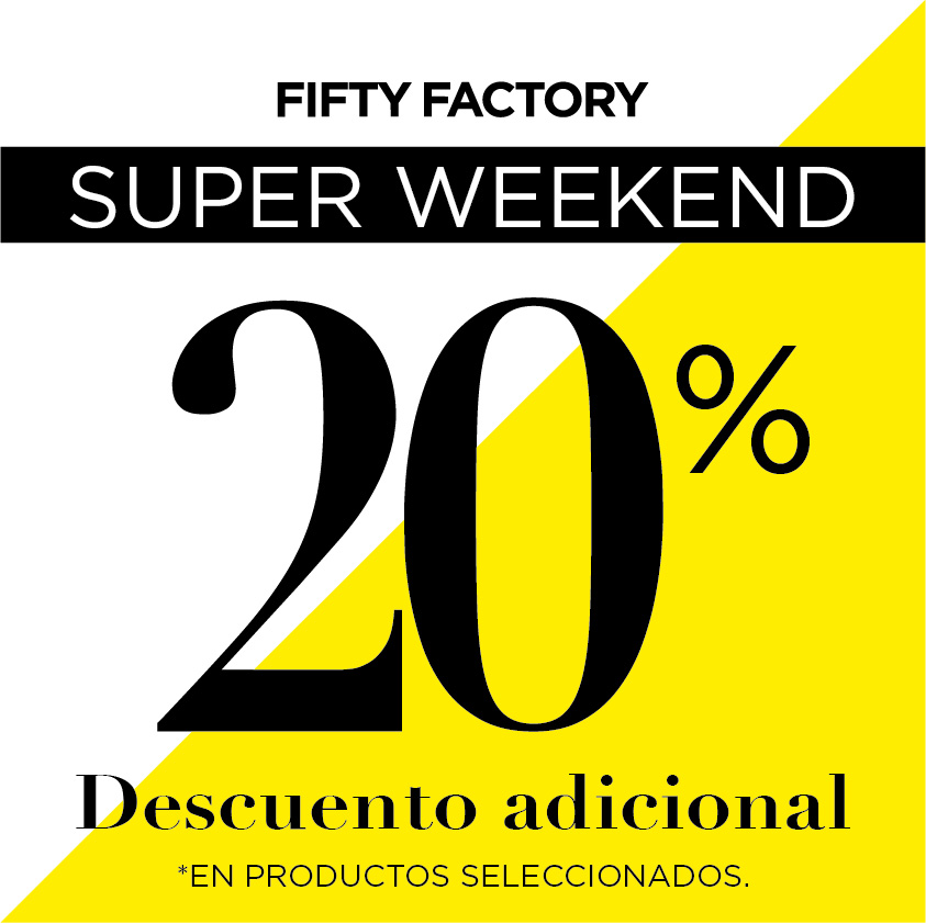 Este fin de semana en Fifty Factory encontrarás un 20% de descuento adicional en productos seleccionados.