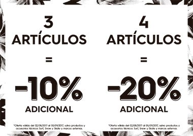 * Promoción no aplicable en productos y accesorios técnicos, surf, snow y skate y marcas externas.