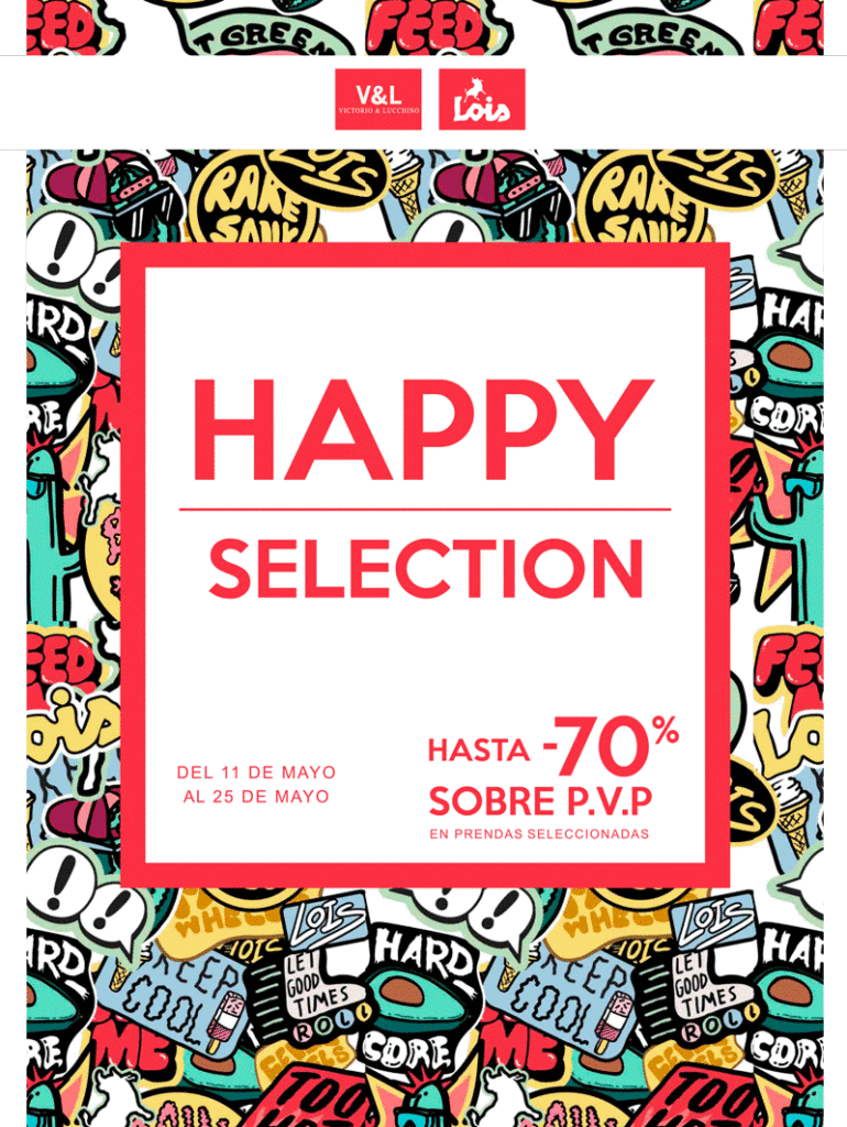 Ven del 11 al 25 de mayo a Lois – Victorio y Lucchino y aprovéchate de hasta el -70% de descuento en prendas seleccionadas.