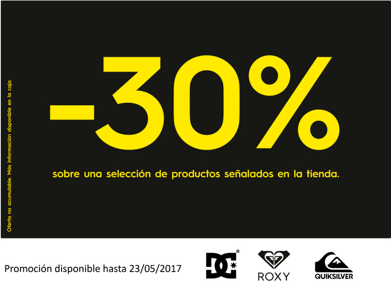 Ven a Quiksilver y aprovéchate de un -30% de descuento sobre una selección de productos señalados en tienda.