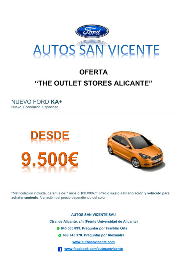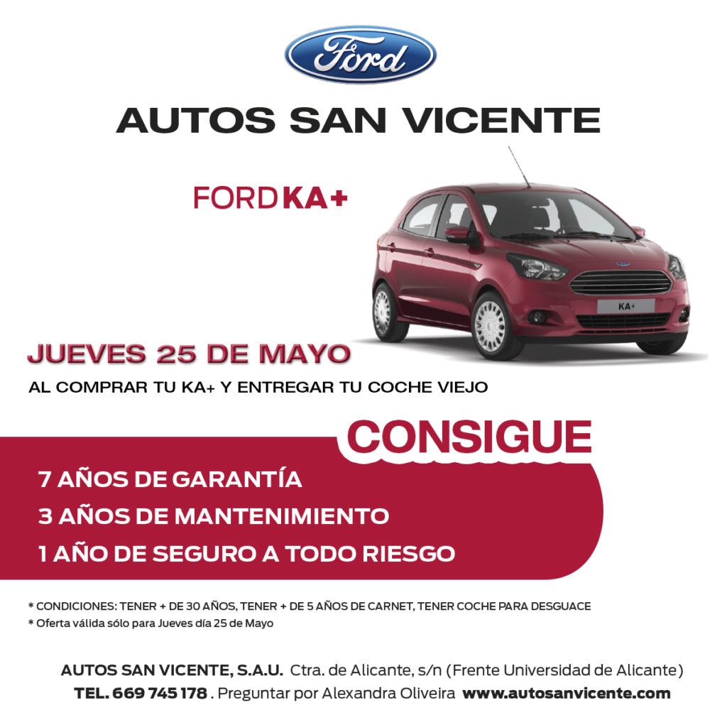 ¡Ten un #SUPERJUEVES sobre ruedas! Al comprar tu KA+ y entregar tu viejo coche en Autos San Vicente conseguirás: