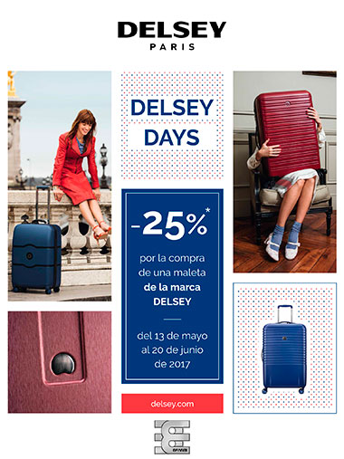 ¿Preparando tu viaje? Obtén un -25% de descuento por la compra de una maleta de la marca Delsey del 13 de mayo al 20 de junio. ¡Sólo elige el destino y a disfrutar!
