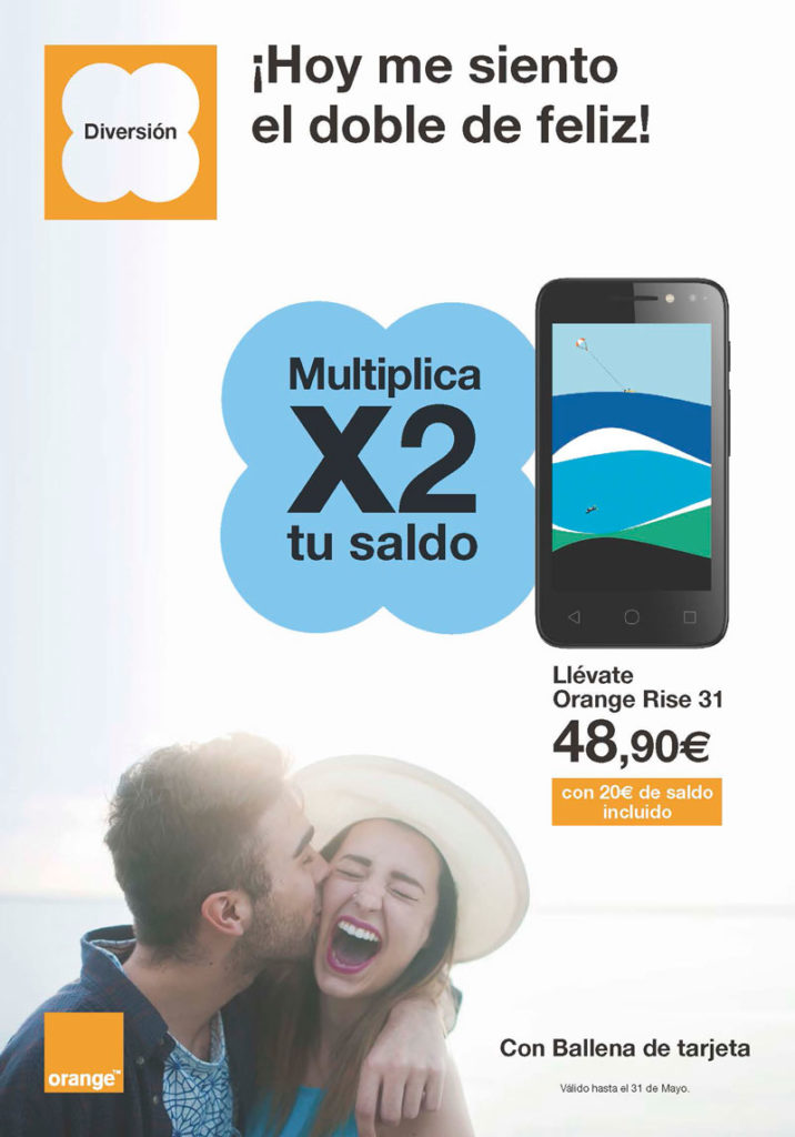 No dejes pasar esta fantástica oportunidad y multiplica x 2 tu saldo ¡Llévate el Orange Rise por 48,90 € con 20 € de saldo incluido!