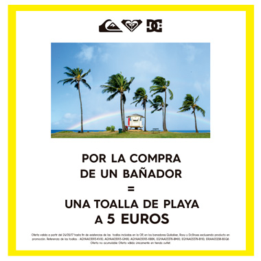 Ahora en Quiksilver por la compra de un bañador llévate una toalla de playa por tan sólo 5 €.