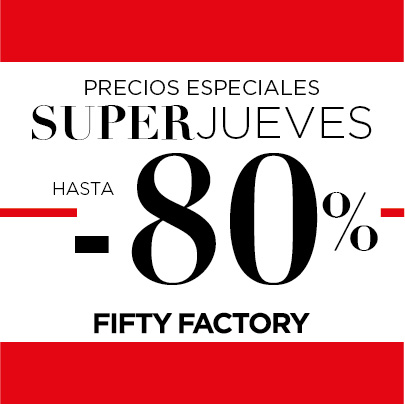 ¡No dejes pasar esta oportunidad única! Descubre este #SUPERJUEVES en Fifty Factory sus precios especiales con descuentos de hasta el -80%.