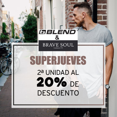 Pásate por tu Centro Comercial The Outlet Stores Alicante, visita Blend & Brave Soul y aprovéchate del -20% de descuento en la segunda unidad.