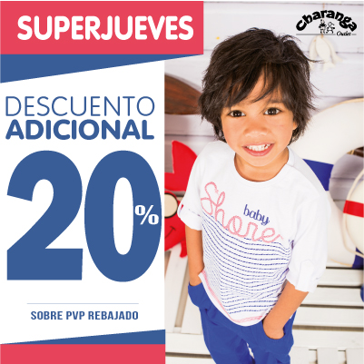 Todo, absolutamente todo, con un -20% de descuento adicional. Asà es Charanga los #SUPERJUEVES.