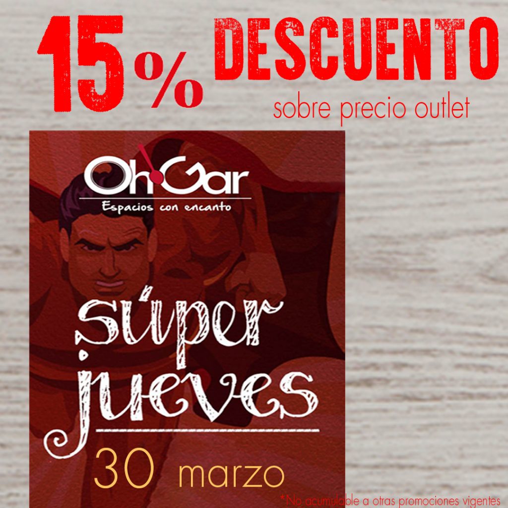 Oh!Gar nos trae este #SUPERJUEVES una estupenda promoción. ¡Toda la tienda con un 15% de descuento adicional sobre el precio Outlet!
