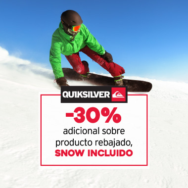 La llegada de la primavera nos llena de felicidad y sobre todo si visitas Quiksilver. Disfruta de esta increÃble promoción: -30% de descuento adicional sobre todo el producto rebajado, incluido Snow.