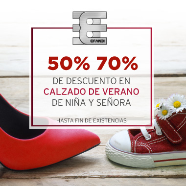 En Efanbi encontrarás el calzado de verano de niña y señora con descuentos del -50% al -70% de descuento.