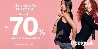 Vista tu tienda Desigual de tu Centro Comercial The Outlet Stores Alicante del 3 al 5 de marzo y encontrarás la colección Otoño-Invierno con descuentos del -70% de descuento sobre precio original.