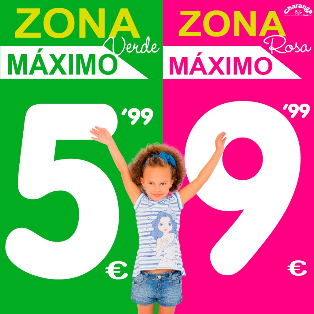 Ahora en Charanga y hasta final de temporada podrás encontrar en nuestra tienda dos zonas diferenciadas,  zona verde con un precio máximo de 5,99€ y zona rosa con un precio máximo de 9,99€.