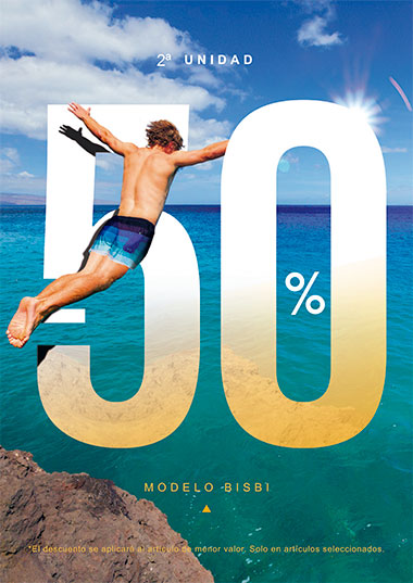 Aprovéchate de la oferta que nos trae Decimas. Ahora los bañadores Bisbi de hombre los tienes con una gran oferta ¡la 2ª unidad al 50%!