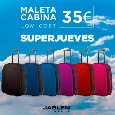 Sabemos que estás pensando en vacaciones y por eso, te va a encantar la promoción que nos trae este #Superjueves Jaslen. Llévate una maleta de cabina Low Cost por tan sólo 35 €.