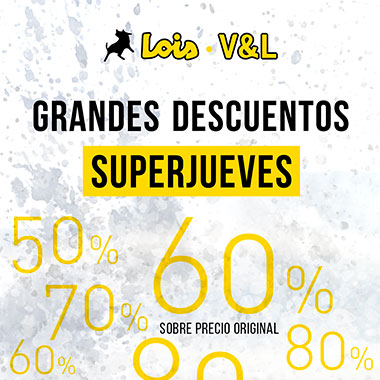 Este #Superjueves va a ser grande, muy grande. Lois – Victorio & Lucchino, nos traen unos descuentazos a los que no podrás resistirte… descuentos sobre precio Outlet de hasta el 30% en todas sus marcas, Lois, V & L, Bendorff & BDF NEXT.