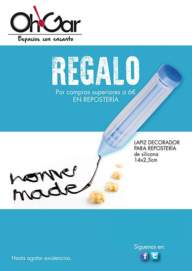 En las tiendas Oh!Gar han desarrollado una promoción muy dulce ? Por compras superiores a 6 € en productos de reposterÃa, llévate de regalo, un lápiz decorador de reposterÃa.