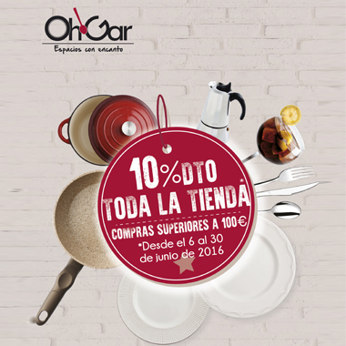 En Oh!Gar queremos hacerte la vida más fácil y por eso, te ofrecemos una promoción que… ¡no puedes dejar escapar! Ven a vernos este mes de junio y llévate un 10% de descuento adicional en todas las compras superiores a 100€.