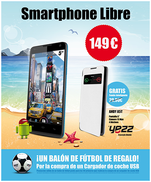 Llévate este magnÃfico smartphone libre Yezz A5T con pantalla de 5″, cámara de 13 mpx, doble sim y procesador de 4 núcleos por sólo 149 €.