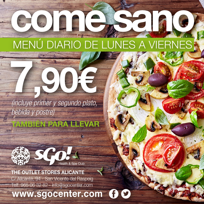 ¡No te quedes con hambre! Prueba nuestros menús diarios en sGo! por sólo 7.90€ (incluye primer y segundo plato, bebida y postre).