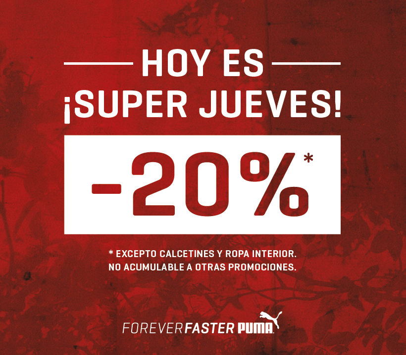 Encuentra en las tiendas de Puma todo lo necesario para seguir en forma este otoño. Además, sólo este jueves es… ¡Superjueves! Llévatelo todo con descuentos del 20%*